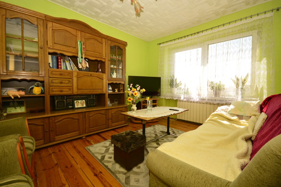W bryle budynku znajduje się garaż jednostanowiskowy z bezpośrednim dostępem do części mieszkalnej. Układ pomieszczeń oraz duża powierzchnia użytkowa stwarzają szerokie możliwości aranżacyjne – zarówno dla większej rodziny, jak i osób poszukujących nieruchomości z potencjałem do modernizacji.
